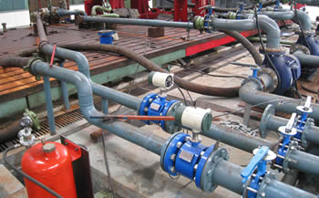 (3)電磁流量計的安裝與調試比其它流量計復雜,且要求更嚴格。變送器和轉換器必須配套使用,兩者之間不能用兩種不同型號的儀表配用。在安裝變送器時,從安裝地點的選擇到具體的安裝調試,必須嚴格按照產品說明書要求進行。安裝地點不能有振動,不能有強磁場。在安裝時必須使變送器和管道有良好的接觸及良好的接地。變送器的電位與被測流體等電位。在使用時,必須排盡測量管中存留的氣體,否則會造成較大的測量誤差。