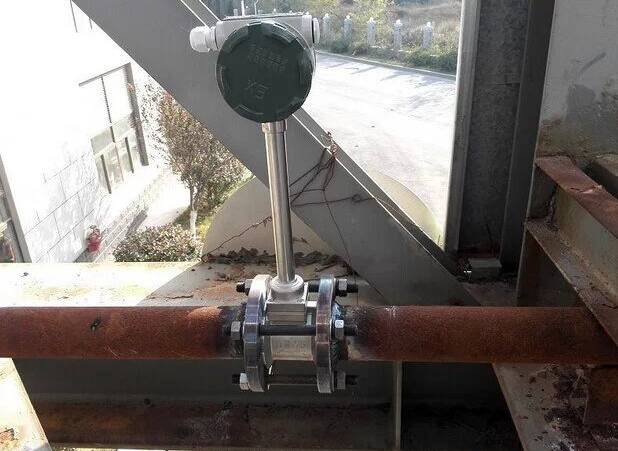 6.傳感器在垂直管道的安裝。測(cè)量氣體流量時(shí),傳感器可以安裝在垂直管道上,流向不限。若被測(cè)氣體中含有少量的液體,氣體流向應(yīng)由下向上。測(cè)量液體流量時(shí),液體流向應(yīng)由下向上:這樣不會(huì)將液體重量額外附加在探頭上。