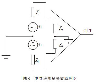 電路為對稱結(jié)構(gòu),圖中e1和Z1分別是傳感器的流量信號和對應(yīng)的流體阻抗,Z0為放大器的輸入阻抗。