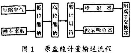 新工藝省去了高位酸槽、酸計量箱和酸霧吸收器,鹽酸計量由管道式流量計控制。該系統(tǒng)是在負壓狀態(tài)下運行,消除了溢酸和鹽酸的揮發(fā),解決了對一些設備和設施的腐蝕,以及酸霧對環(huán)境的污染問題,使用比較安全可靠。