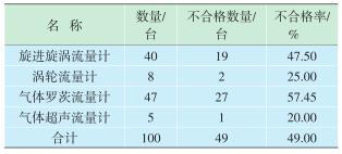 在2017年的工作基礎(chǔ)上,對2018年送檢的氣體流量計(jì)進(jìn)行了抽查,并按不同類型進(jìn)行了統(tǒng)計(jì)(表2)。