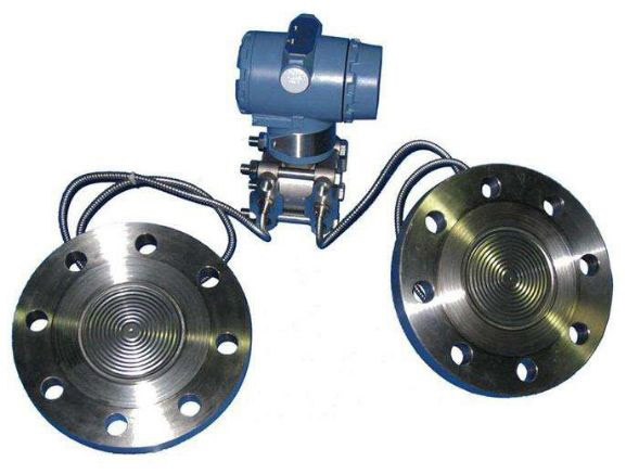 雙法蘭是指變送器的正、負壓側均是法蘭結構,可以直接與需測量的容器、管道相連。優(yōu)點是安裝容易,校驗方便,不需量程遷移。缺點是測量精度不高,由于法蘭與變送器之間采用彈性軟管連接,內部應該是充滿硅油,所以對介質壓力變化的傳遞有一定的偏差,外界溫度變換多多少少對硅油有一些影響,所以測量反映上就有一定的誤差。