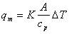 消耗功率p和溫度差δt如式3所示比列關系,式中b, c, k均為常數,k在?~?之間。從式2便可算出質量流速,乘上點流速于管道平均流速間系數和流通面積的質量流量qm,再將式3變換成式4。
