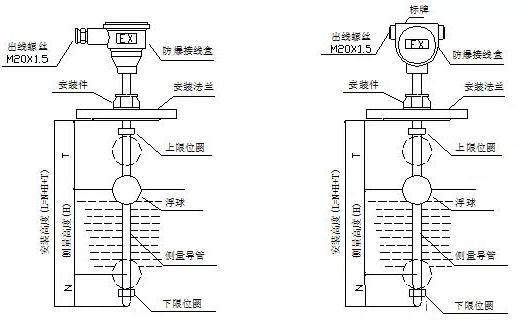2、安裝前需確認被測液體內及液位計周圍不應有鐵磁性雜質,且介質比重應大于浮球的比重,否則會影響液位計正常工作。