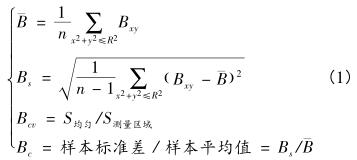 為了詳細(xì)的獲得井水流量計(jì)勵(lì)磁線圈及T型磁芯變化對(duì)流量計(jì)測(cè)量區(qū)域內(nèi)部磁場(chǎng)強(qiáng)度分布的影響情況,引入樣本平均值、樣本標(biāo)準(zhǔn)差、變異系數(shù)、磁場(chǎng)均勻度、感應(yīng)電勢(shì)值等磁場(chǎng)評(píng)價(jià)指標(biāo)分析傳感器勵(lì)磁線圈不同軸向長度時(shí)測(cè)量區(qū)域內(nèi)部磁場(chǎng)分布情況,如式(1)所示。式中,B為樣本平均值;B s為樣本標(biāo)準(zhǔn)差;B cv為樣本磁場(chǎng)均勻度;B c為樣本變異系數(shù)。在這4個(gè)磁場(chǎng)評(píng)價(jià)指標(biāo)中,樣本平均值越大越好,樣本標(biāo)準(zhǔn)差越小越好,磁場(chǎng)均勻度越大越好,變異系數(shù)越小越好。
