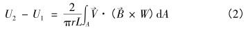 式中,U2-U1是兩電極的電勢(shì)差;A表示對(duì)所有空間積分;L為絕緣管道筒長一半;r為流量計(jì)截面管半徑;矢量珗B是導(dǎo)電流體的流速;B是磁感應(yīng)強(qiáng)度;W為矢量權(quán)重函數(shù),它是一個(gè)只由井水流量計(jì)本身結(jié)構(gòu)決定的量。由(2)式可知,只要確定了流體的流速V、磁感應(yīng)強(qiáng)度B、以及權(quán)重函數(shù)W,以及流量計(jì)管徑半徑,就可以求流量計(jì)的感應(yīng)電勢(shì)差。